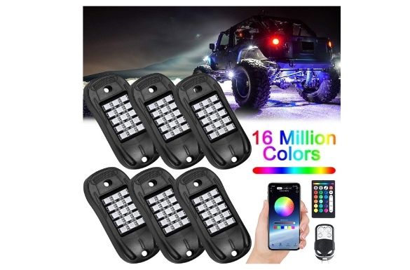 The rock light kit is Bluetooth controlled and, therefore, effortless to use. The ability to customize it also makes your jeep, a crowd favorite. You can credit the high-performance to 120-degree RGB beam, optimized brightness, and 3W CREE LED Chips.